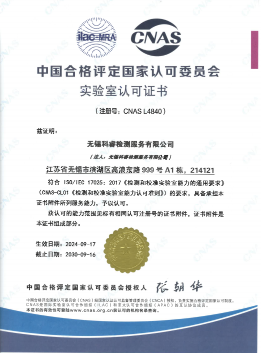 2010年取得CNAS證書,是無錫較早取得證書的民營第三方檢測公司,2014年獲得江蘇省民營科技企業的稱號,2017年獲得檢驗檢測機構資質認定證書(CMA)等多項榮譽資質。 科睿檢測始終追求先進科學的技術,過硬質量,貼心售后服務贏得了良好的市場口碑,客戶總數已達到1000 家以上,中國500強企業已超過100家。